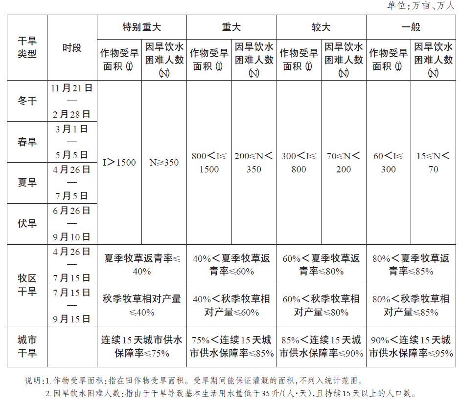 水旱灾害按照其性质、造成损失、危害程度、可控性和影响范围等因素,分为特别重大、重大、较大和一般4个等级;根据水旱灾害分级,省级水旱灾害应急响应由高到低分为一、二、三、四级。